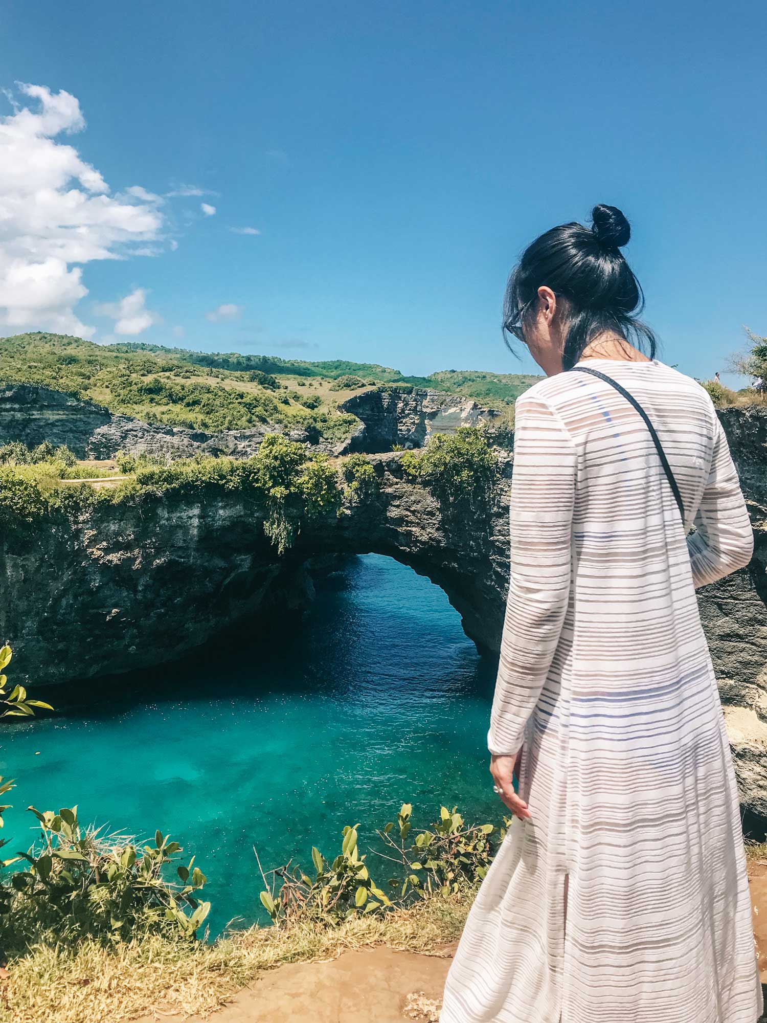 Angel's Billabong is a rock formation with nature built-in rock pool. Nusa Penida is famous for its coastline and from Angel's Billabong, you can have this infinity pool view of the Indian ocean coast! As hard as we tried, we got the shot with just each one of us, but please keep in mind that you will almost never have the pool alone to yourself.
